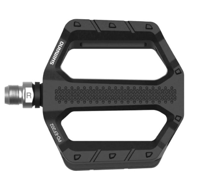 SHIMANO's flat pedals deliver stability and comfort for commuting and urban riding. Designed for use with formal footwear, these pedals offer a solid pedal-shoe interface, textured surface, and a wide aluminum platform for confidence and control in any riding condition.